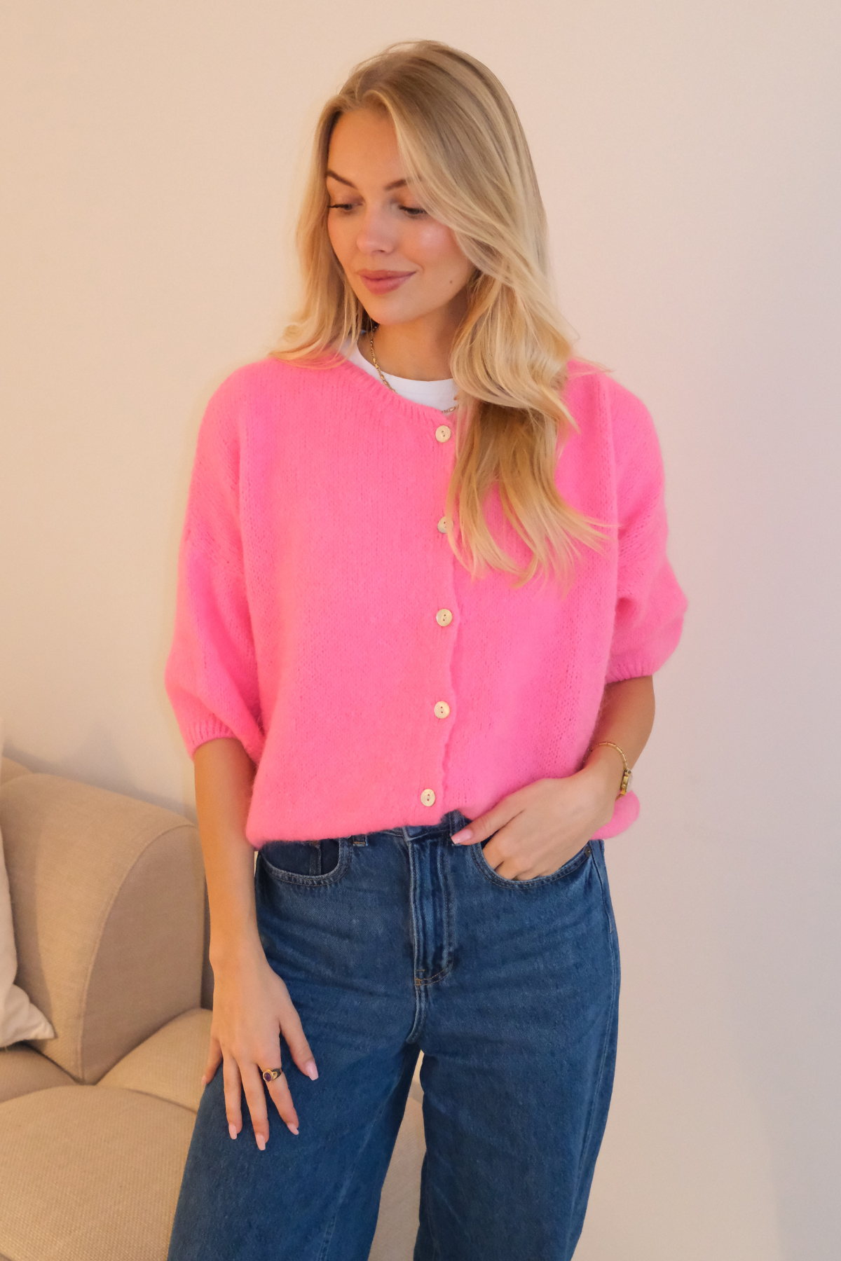 Mary lyhythihainen neule - Vauvan pinkki