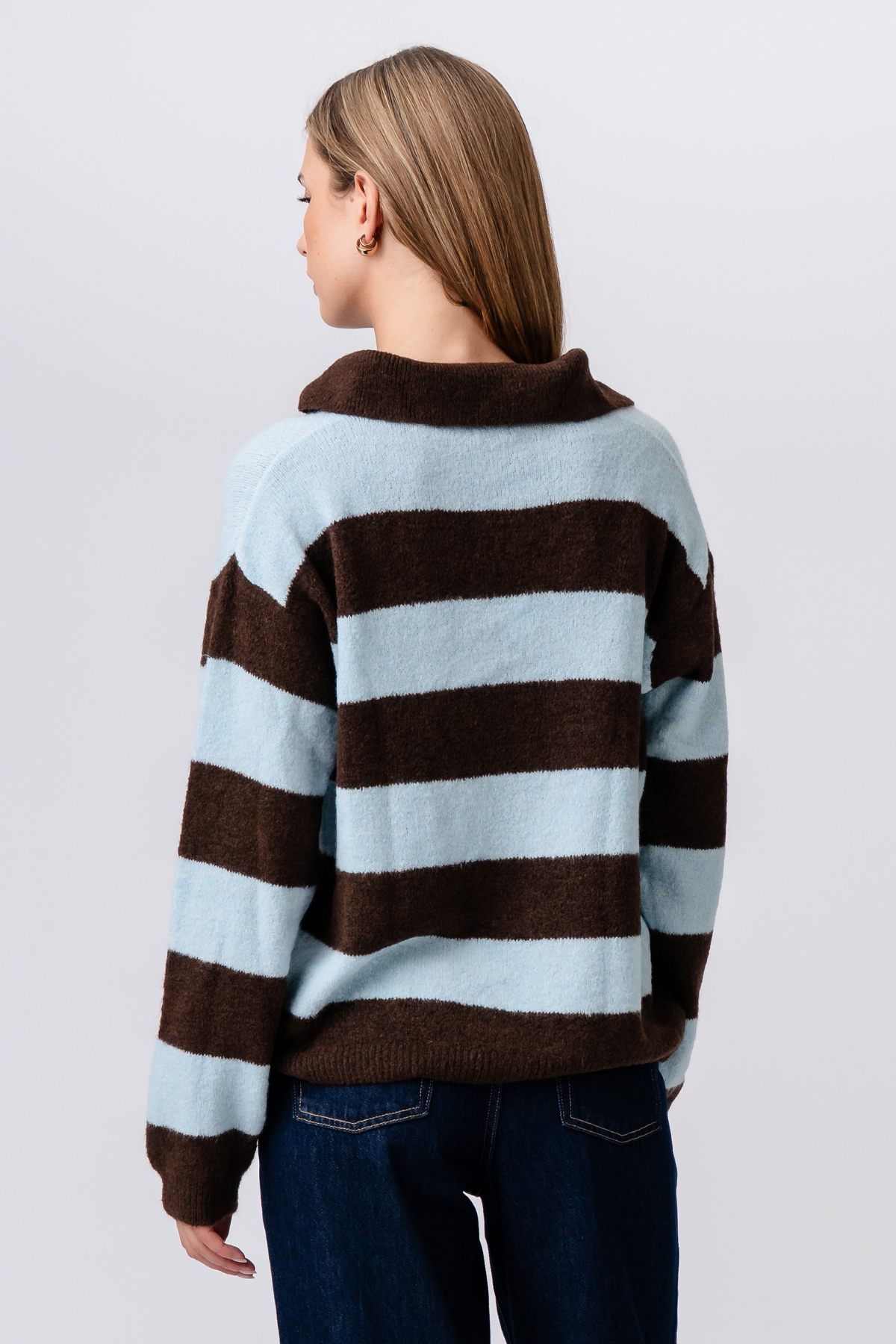 Nora Knitin kauneus piilee sen yksityiskohdissa. Ainutlaatuinen väriyhdistelmä lämmin, maanläheinen ruskea ja rauhallinen, vaalea taivaansininen luo visuaalisesti upean kappaleen, joka on sekä maadoittava että kohottava. Se on luonnon inspiroima paletti, joka tarjoaa virkistävän vaihtoehdon yksivärisille perusväreille. Koostumus ilahduttaa aisteja – pehmeä, kutsuva käsituntuma, jossa on vahva mutta kevyt verho, joka imartelee jokaista siluettia. Tämä villapaita ei vain näytä uskomattomalta, vaan tuntuu lempeältä halalta koko päivän.