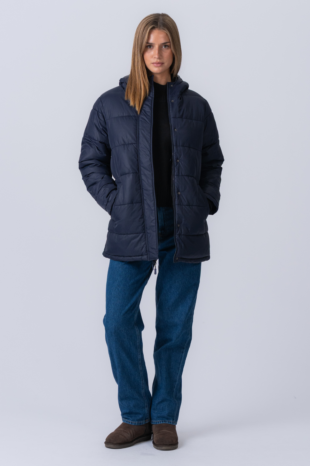 Älä anna kylmän sanella tyyliäsi. Määritä se. Lisää tämä välttämätön merivoimien pitkä puffer -takki vaatekaappiin tänään.