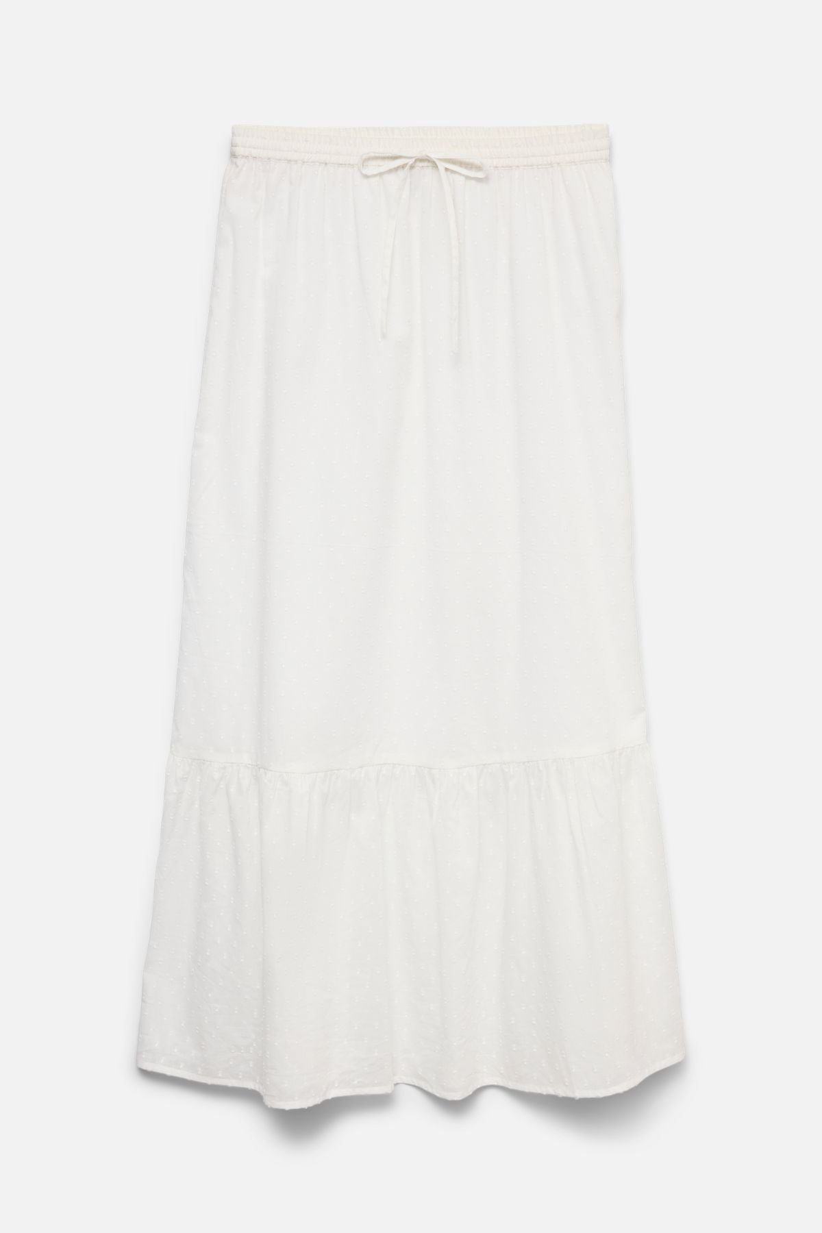 Raikkaan valkoisen maxihameen kauneus piilee sen monipuolisuudessa. Snow White -sävy tarjoaa puhtaan ja kiillotetun ilmeen, joka sopii kauniisti melkein kaiken kanssa kaapissasi. Rentouttavaa päivätunnelmaa varten yhdistä se yksinkertaiseen, sisään vedettävään toppiin ja nahkaisiin sandaaleihin. Kun aurinko laskee ja kylmyys nousee ilmaan, kerrostele asusi tyylikkäällä Takit ja takit säilyttääksesi tyylikkään reunan. Oletpa sitten osallistumassa puutarhajuhliin, toimistoon tai nauttimassa viikonloppubrunssista, tämä hame mukautuu tarpeisiisi helposti.