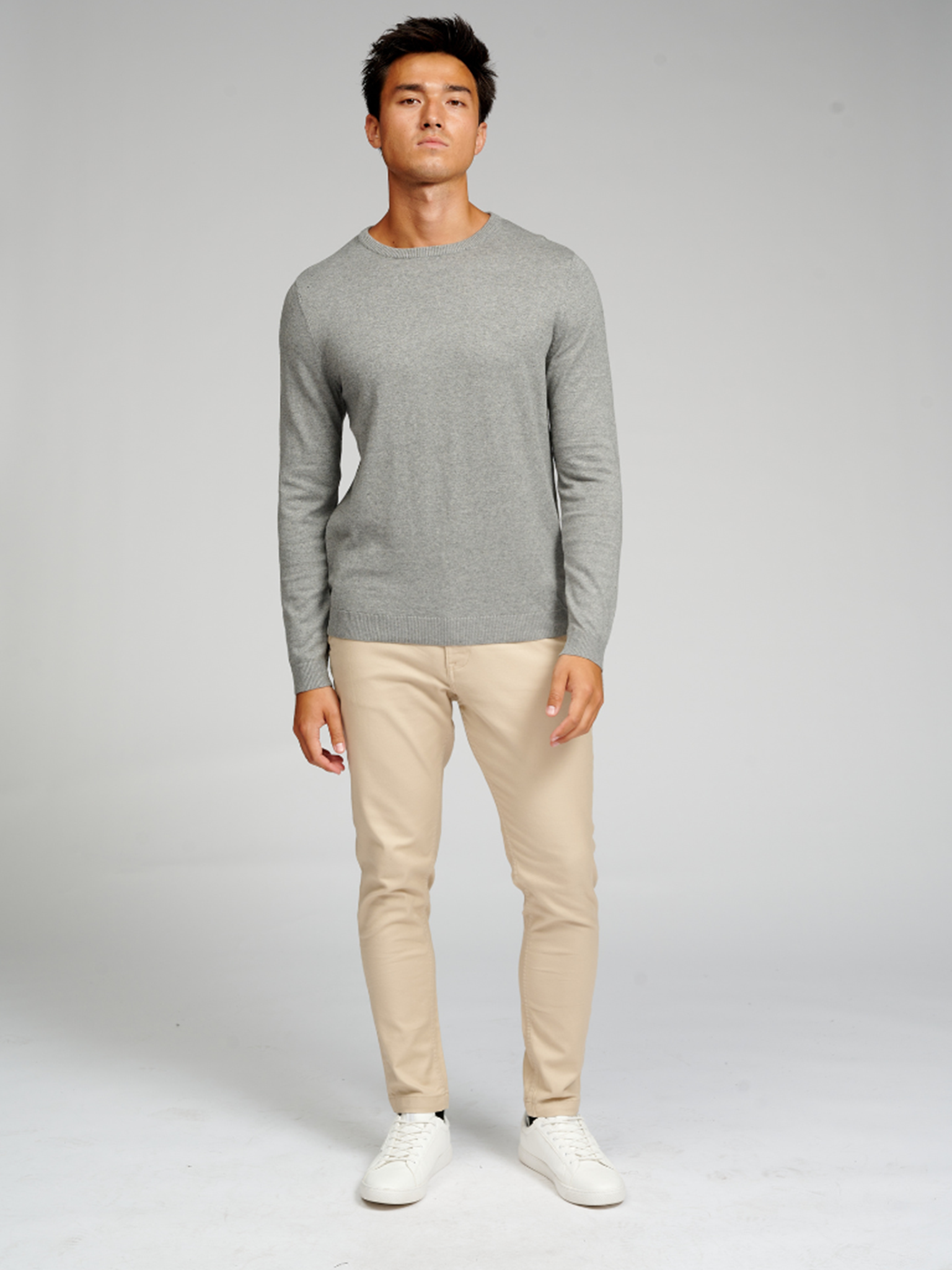 Nosta vaatekaappi ajattomalla mukavuudella: Basic Neule miehistö - Harmaa melange miehille