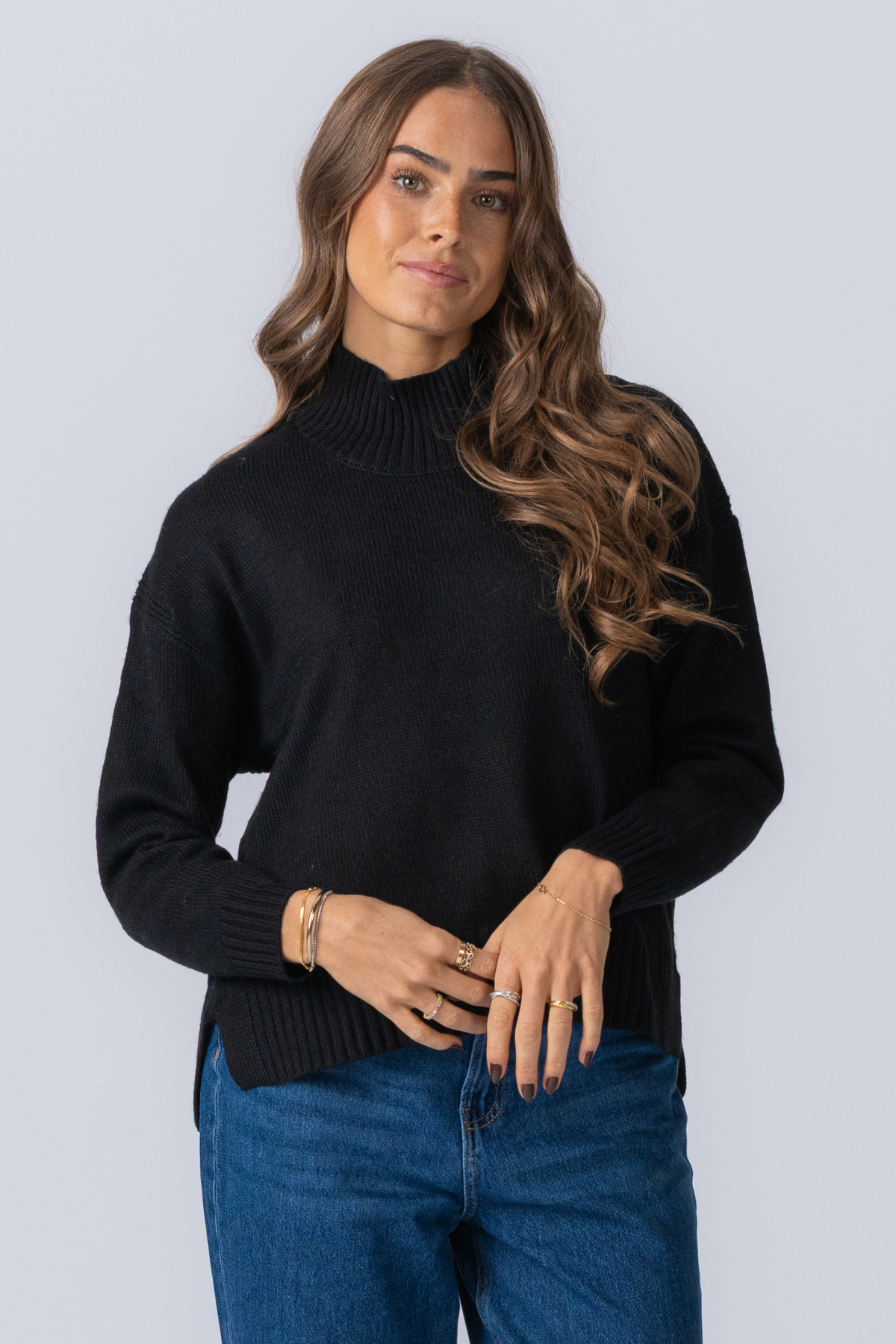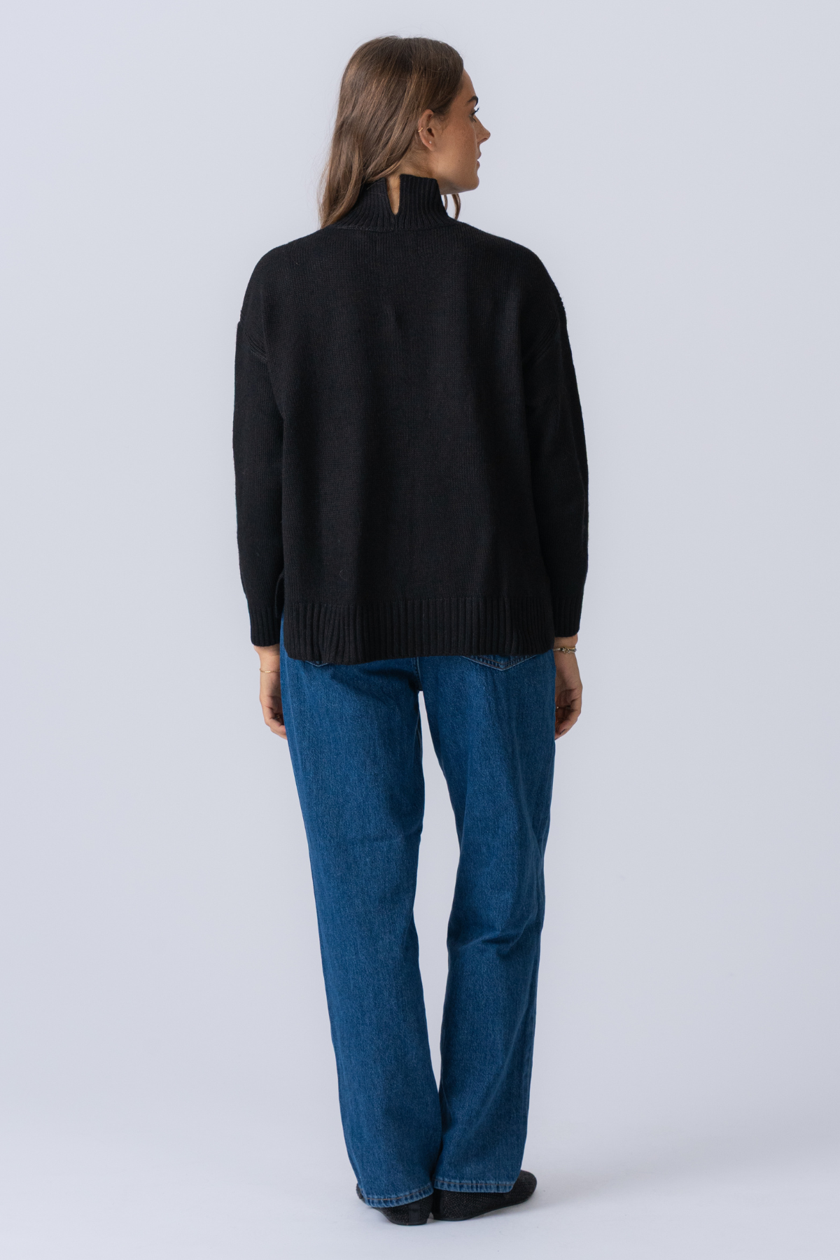 TeeShoppen's Oversized Neulottu poolokauluksinen pusero - musta naisille