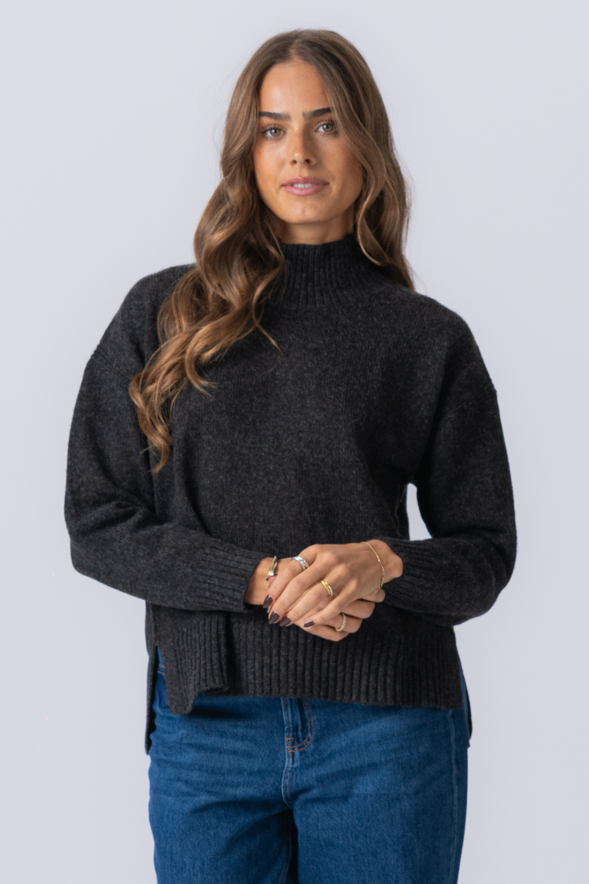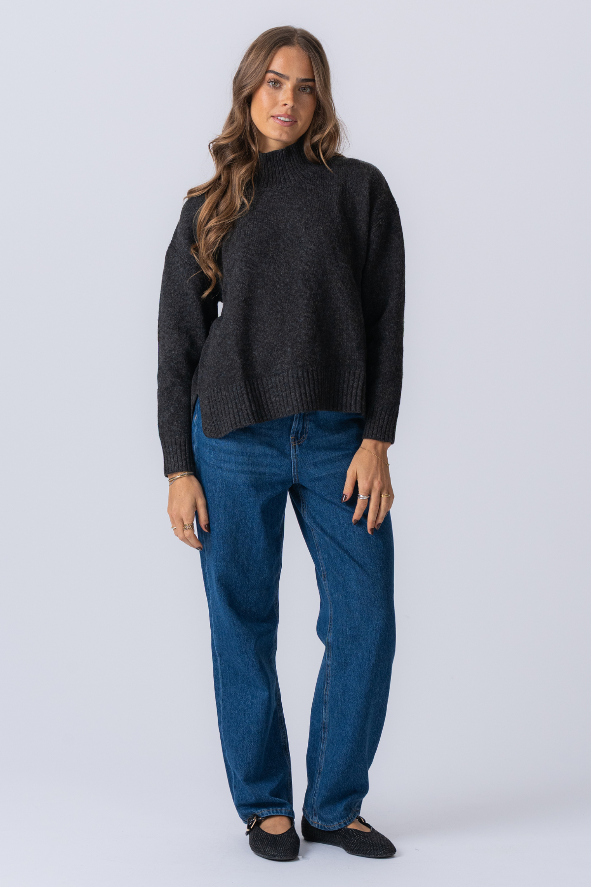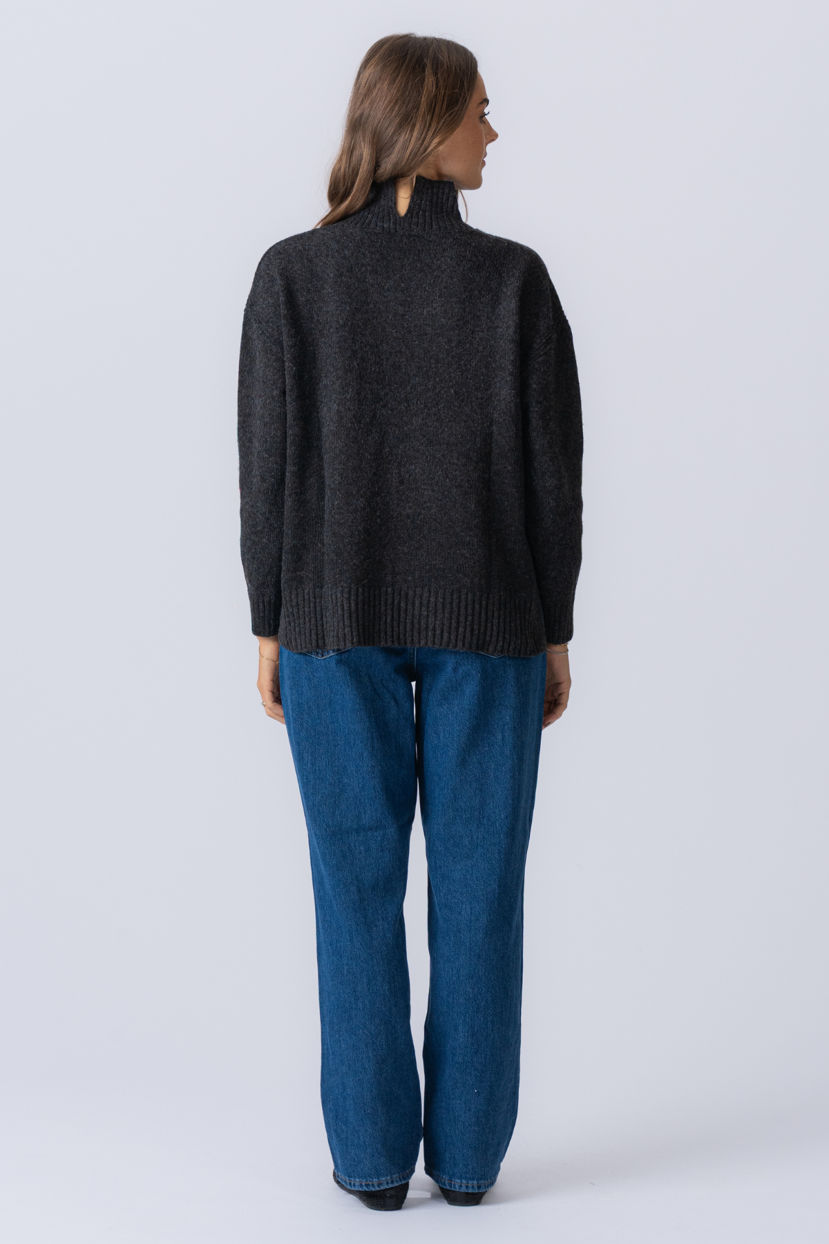 Ylisuuret neulottu polo -kaula -hyppääjä - tummanharmaa melange