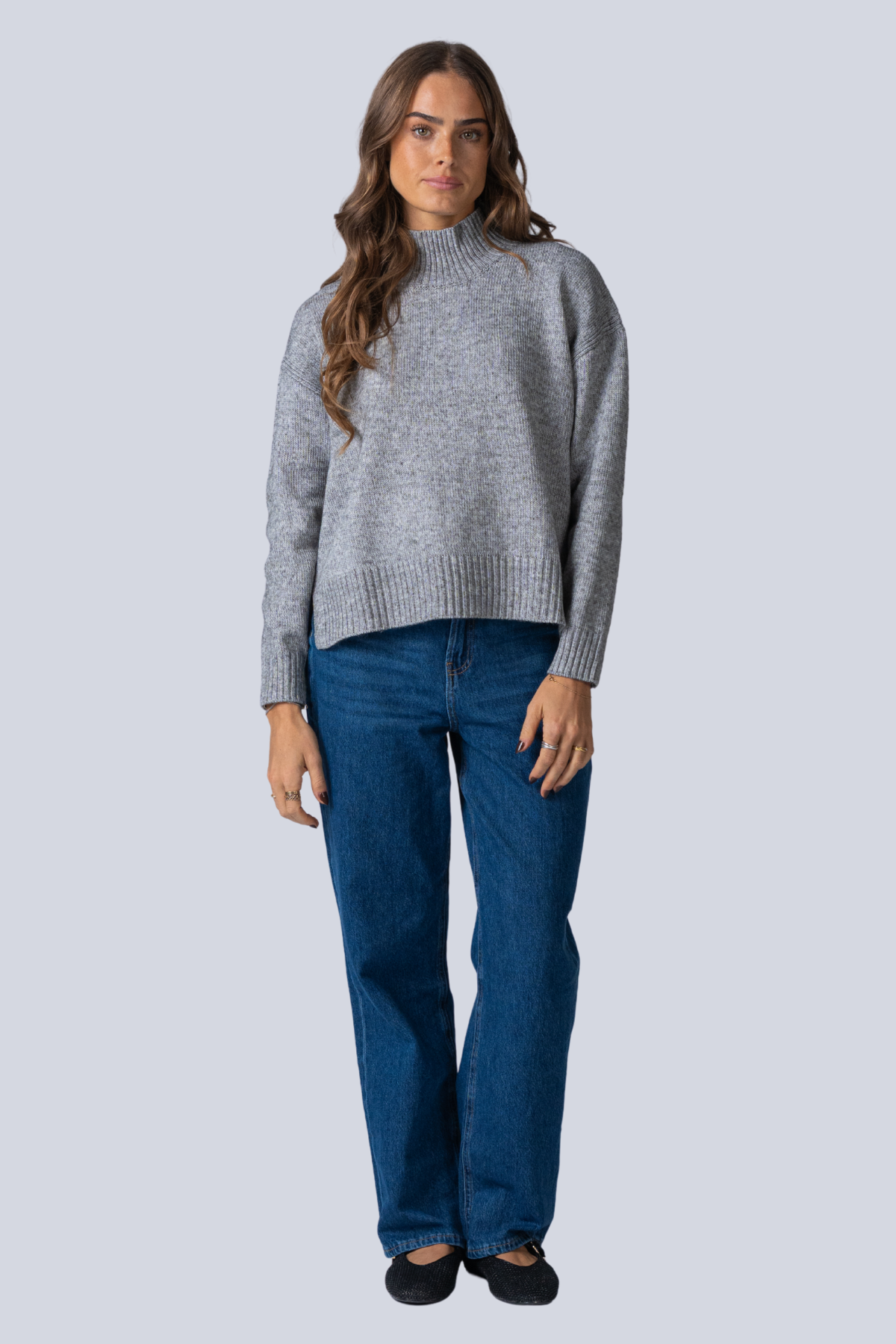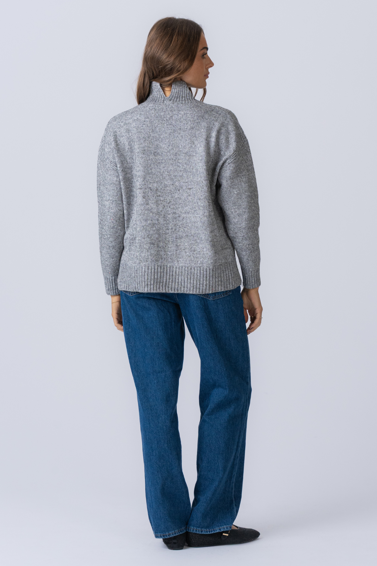 TeeShoppen's Oversized Neulottu poolokauluksinen pusero - Vaaleanharmaa Melange naisille