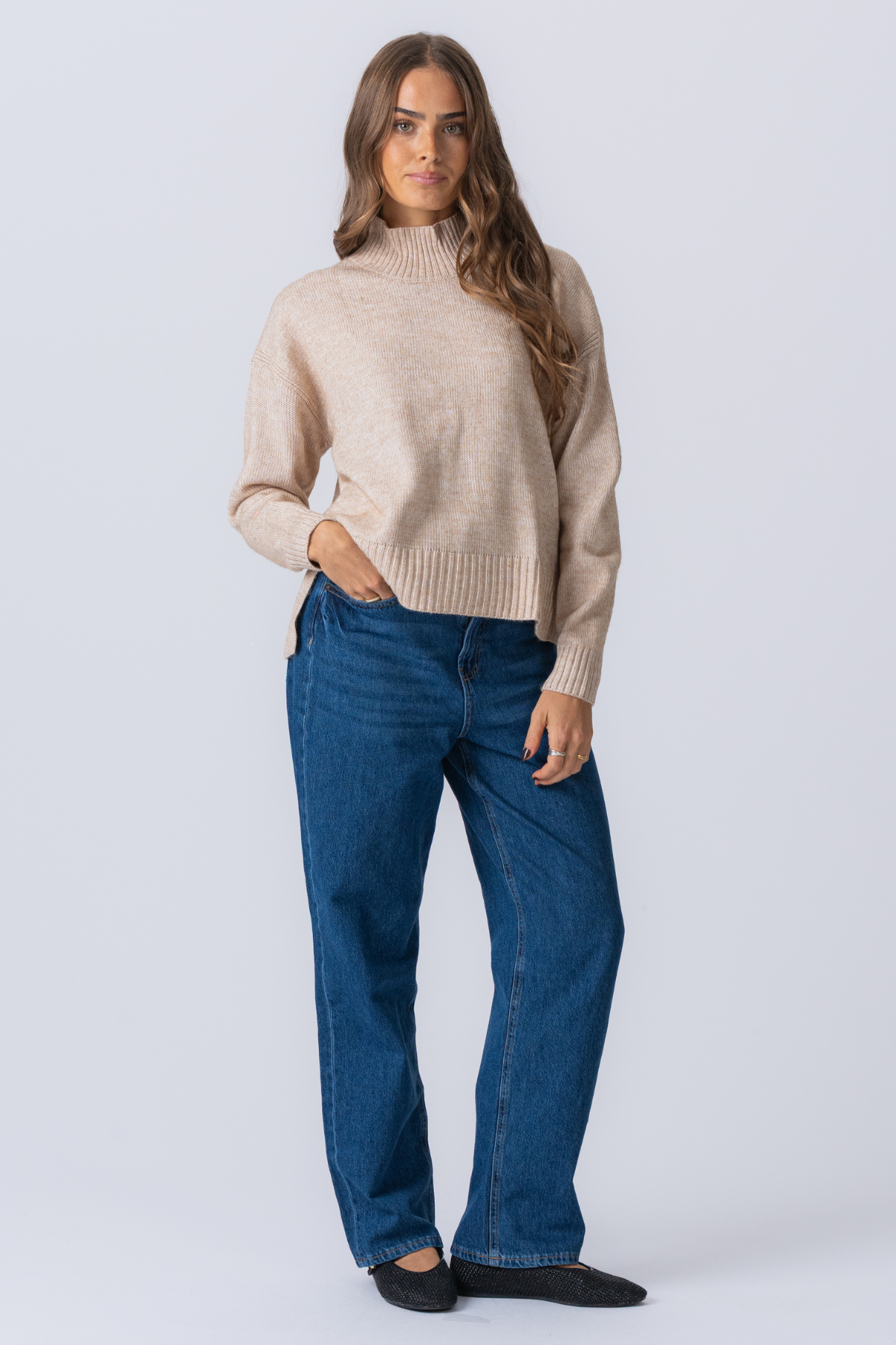 Osoitteessa TeeShoppen, olemme erikoistuneet tuottamaan basic vaatteita kypsille ihmisille. Verkkokauppamme kautta käy vuosittain yli 750 000 asiakasta ja paketteja lähetetään viikon jokaisena päivänä, joten sitoutumisemme laatuun ja asiakastyytyväisyyteen on vertaansa vailla. Meidän Oversized Neulottu poolokauluksinen pusero - Beige naisille yhdistää ajattoman tyylikkyyden ja vertaansa vailla olevan mukavuuden, joten se on täydellinen lisä vaatekaappiisi.