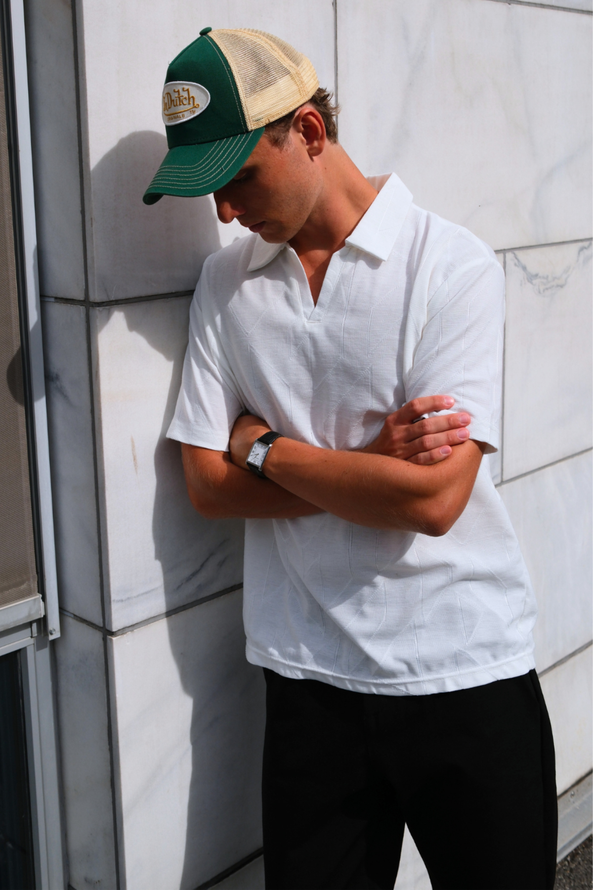Mikä erottaa Atlas Polo toisistaan, on sen erottuva kuvion kudonta. Se's Hieno, hienostunut yksityiskohta, joka lisää syvyyttä ja ulottuvuutta terävään valkoiseen kankaaseen, kiinnittäen valon ja piirtäen silmän. Tämä ei ole kova kuvio; se's Hiljainen lausunto laadusta ja huomiota yksityiskohtiin. Rikas tekstuuri nostaa koko vaatteen muuttamalla sen yksinkertaisesta niitistä a premium pala, joka tuntuu niin hyvältä kuin miltä se näyttää. Se's Sellainen paita, joka ansaitsee kohteliaisuuksia ja saa sinut tuntemaan itsesi varmuuteen heti, kun laitat sen.