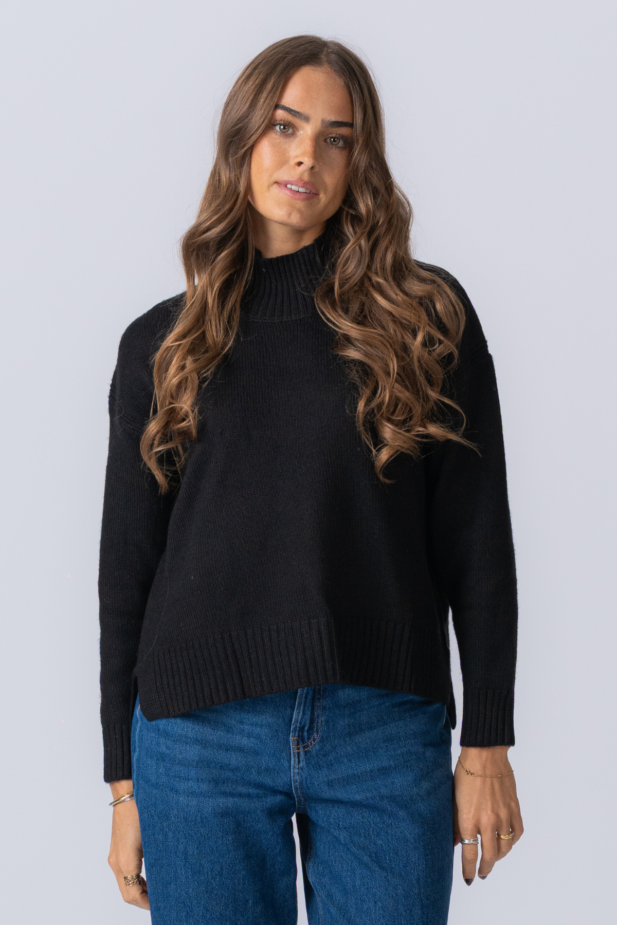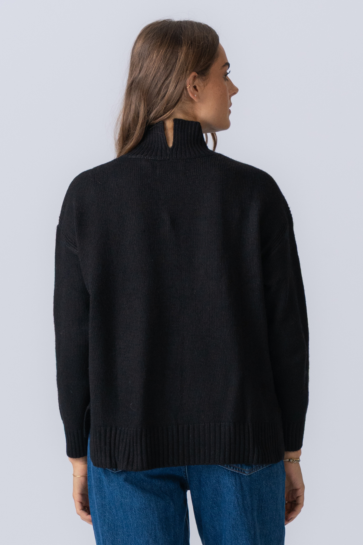 Tyylikäs poolo-kaula-alue parantaa lämpöä ja lisää ripaus hienostuneisuutta.
