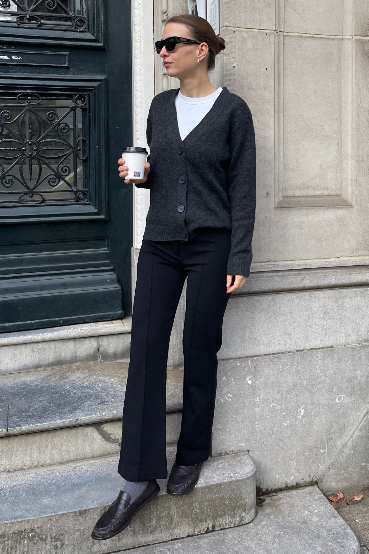 Tutustu TeeShoppen's Neulottu neuletakki tummanharmaassa melangessa, suunniteltu vaativalle naiselle, joka arvostaa klassisia vaatekaapin perusasioita. Liity tyytyväisten asiakkaidemme yhteisöön, joka arvostaa ajattomia ja huolella valmistettuja vaatteita.