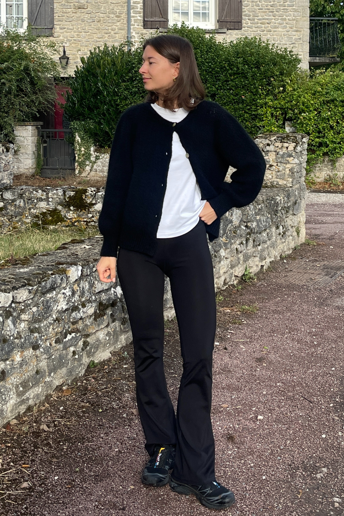 Step into timeless elegance with the Anna Cardigan in classic black, a versatile piece from TeeShoppen's exclusive range for women. This cardigan is the embodiment of style and comfort, intricately designed to complement any wardrobe. With its flowing silhouette, the Anna Cardigan drapes beautifully, offering both warmth and chic appeal. Perfect for layering, it effortlessly transitions from a cool autumn day to a brisk winter night. The fabric blend ensures a cozy feel, made with 44% Acrylic, 26% Polyamide, 20% Kid Mohair, and 10% Wool, creating a soft and indulgent touch against the skin. Whether you're headed to the office or a casual weekend outing, this cardigan is the essential fashion-forward piece that elevates every look. Pair it with your favorite jeans for a laid-back vibe or over a dress for a more refined ensemble. Embrace the elegance and simplicity of the Anna Cardigan – where comfort meets style.