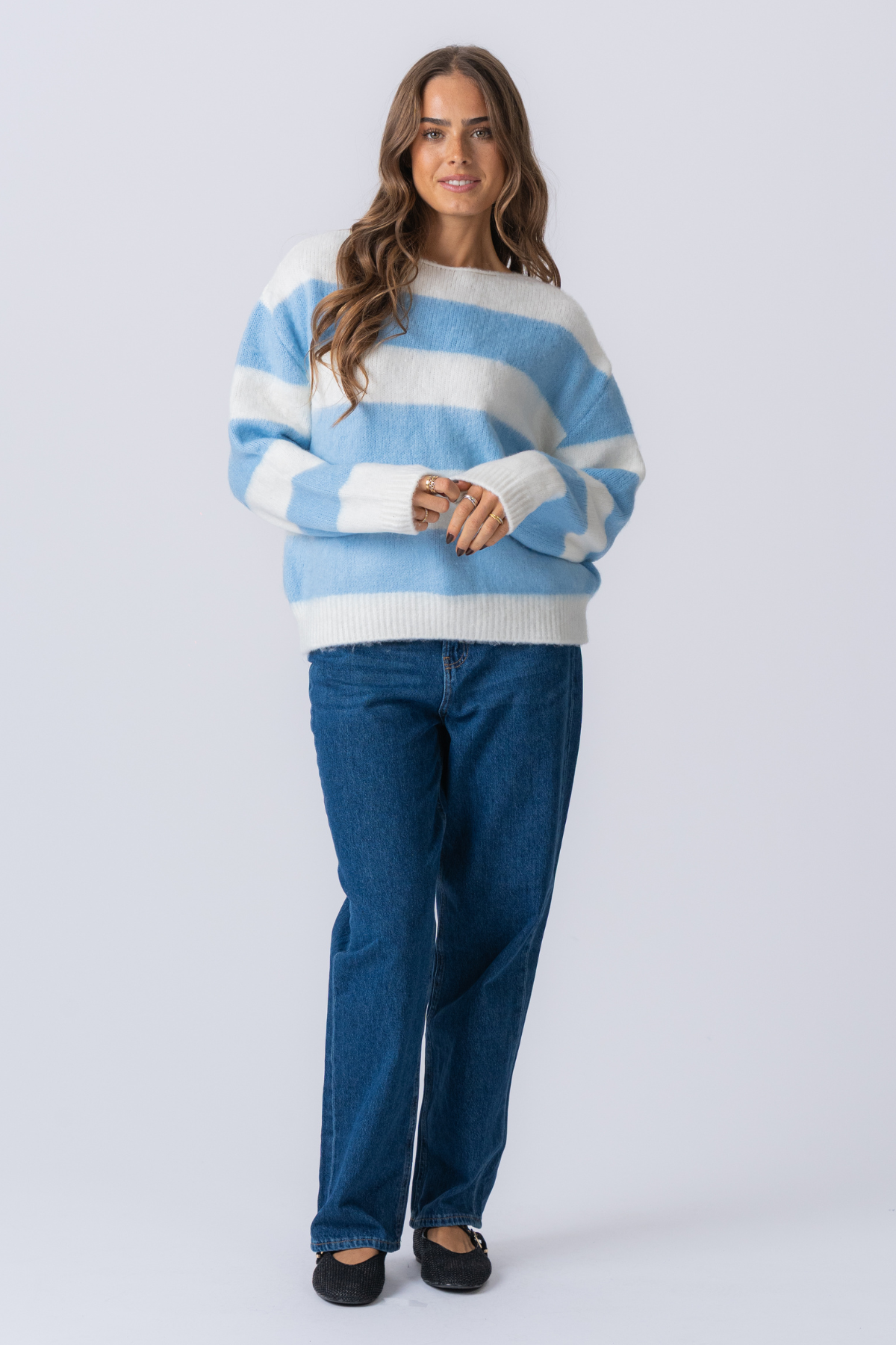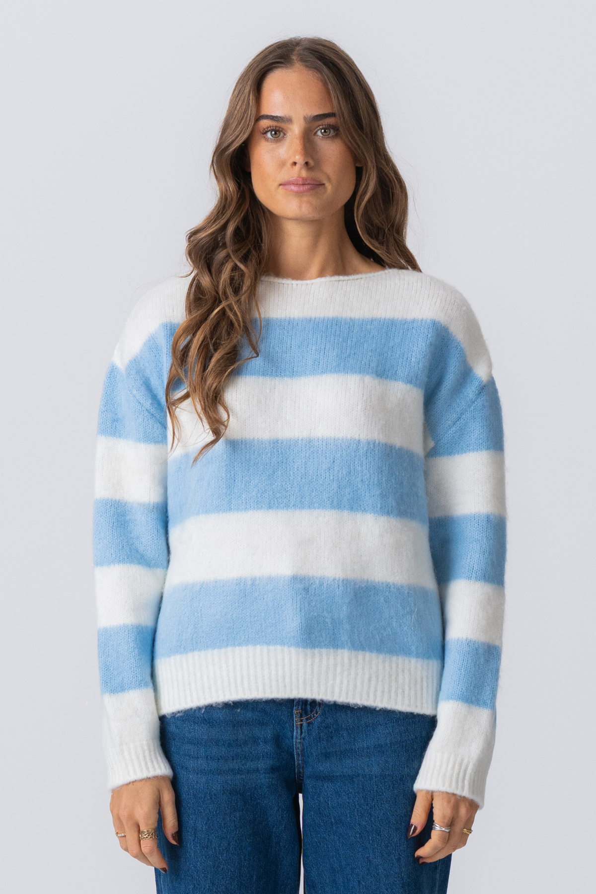 Tapaa Celinan raidallinen neulottu villapaita, uusi meno-ikäinen tyyli ja uskomaton mukavuus. Tämä villapaita on suunniteltu nykyaikaiselle naiselle, joka arvostaa sekä hienostuneisuutta että helppoutta, ja se vangitsee tyylikkään, jokapäiväisen ylellisyyden olemuksen. Seesteinen taivaansiniset raidat rapeaa valkoista taustaa vasten luovat klassisen, merenkulun inspiroiman ilmeen, joka tuntuu raikkaalta, ilmavalta ja loputtoman monipuoliselta. Kuvittele,s Kauniita hetkiä.