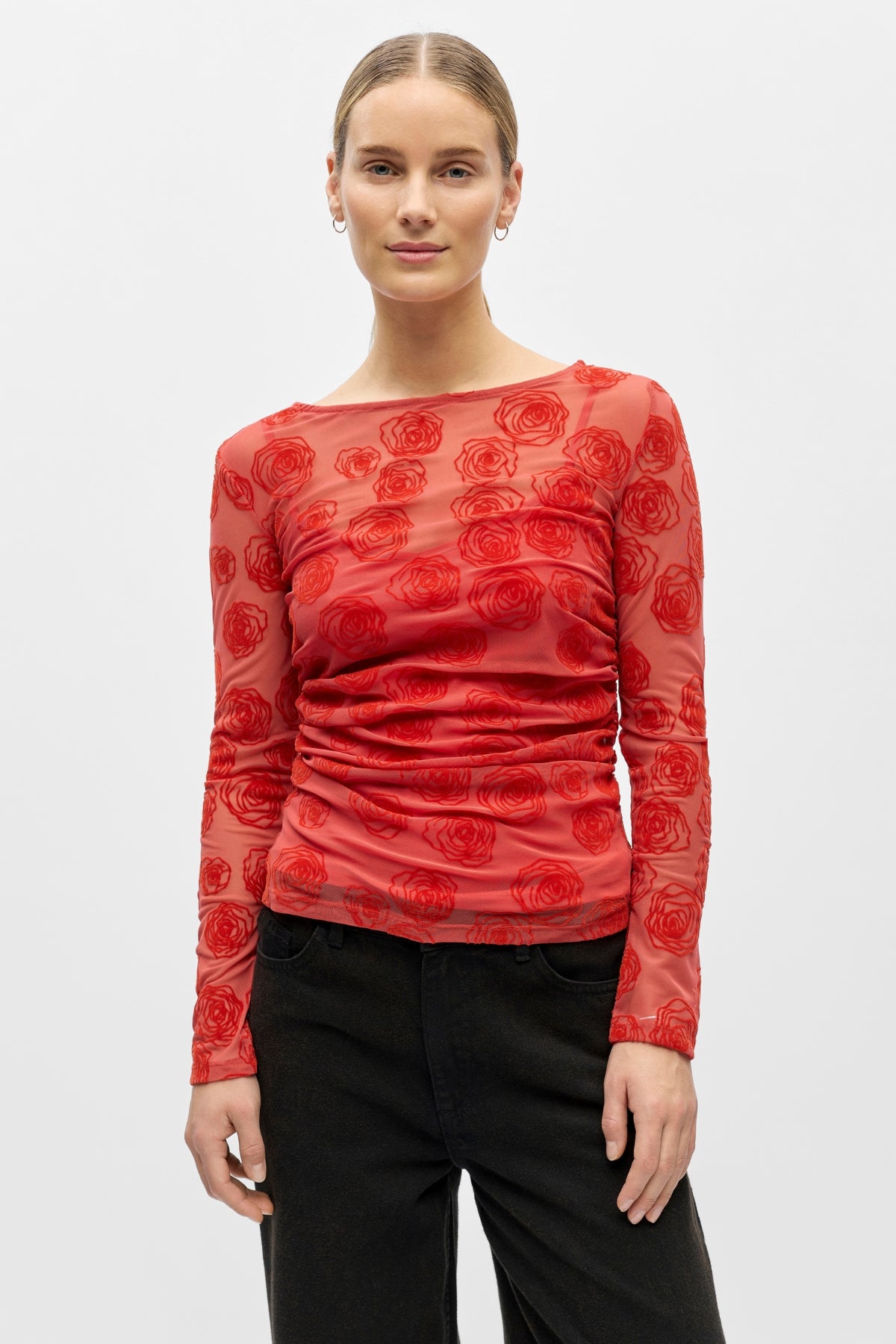 Astu romanttisen hienostuneen maailmaan Elodie Top by Objectin avulla. Tämä on enemmän kuin pelkkä vaate; se's puettava taideteos, joka on suunniteltu tuomaan vaatekaappiisi vertaansa vailla olevaa kauneutta ja modernia ylellisyyttä. Vangitseva Cranberry Poinsettia Rose -printti luo upean visuaalisen ilmeen, mikä tekee tästä toppista erottuvan kappaleen kaikkiin tilaisuuksiin ja varmistaa, että säteilet itsevarmuutta kaikkialla.