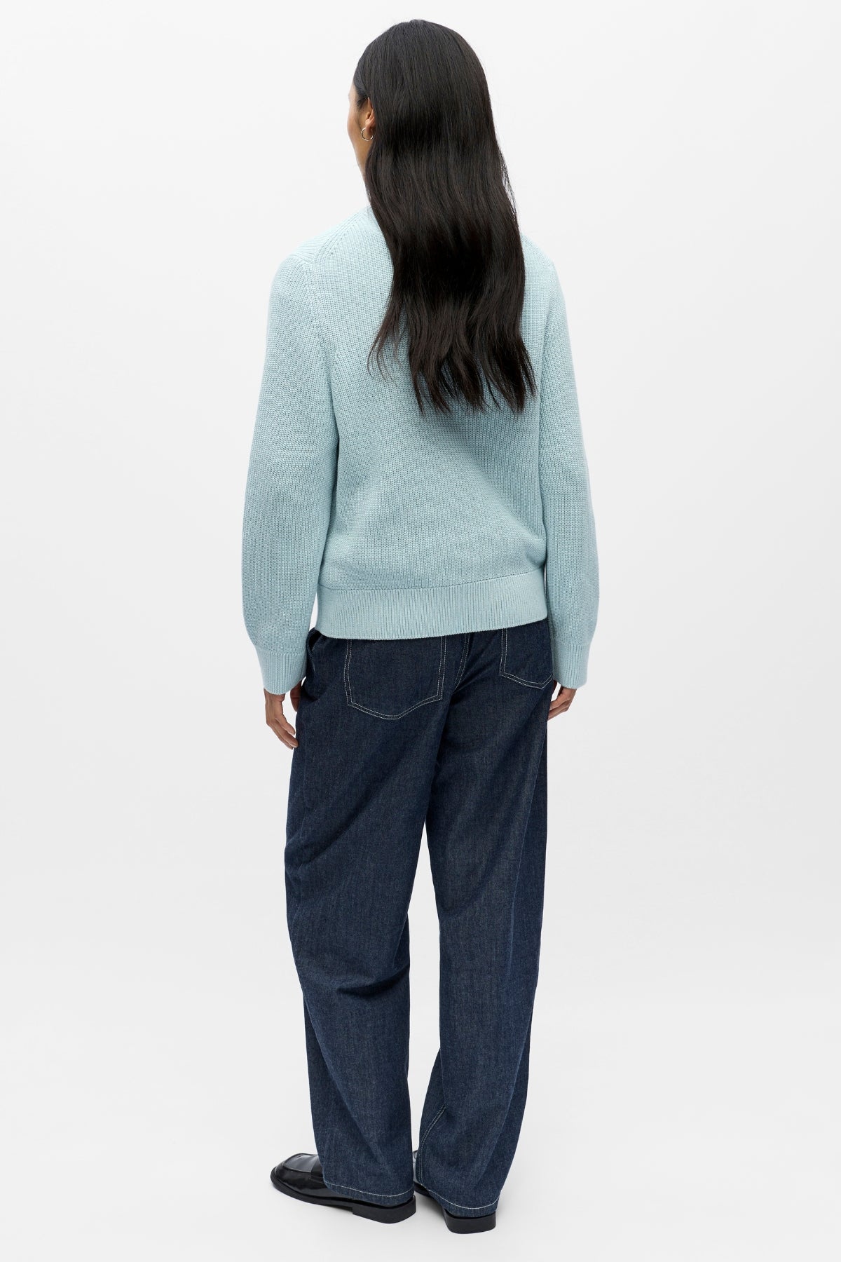 Ajaton muotoilu ja seesteinen Winter Sky -väri tekevät tästä villapaidosta todellisen vaatekaappisankarin. Sen kauneus piilee sen yksinkertaisuudessa ja sopeutumiskyvyssä. Suunnitteletpa sitten kiireistä työpäivää tai rentoa viikonloppua, Flo Knit Sweater vaihtuu saumattomasti. Jos haluat kiillotetun, toimistokäyttöön sopivan kokonaisuuden, yhdistä se klassiseen räätälöityyn Pants ja loafers. Luo tyylikäs vapaa-ajan ulkoasu muotoilemalla se suosikkifarkuillasi ja nilkkureillasi tai kerrosta se slip-mekon päälle illanviettoa varten. Sen monipuolisuutta rajoittaa vain mielikuvituksesi.