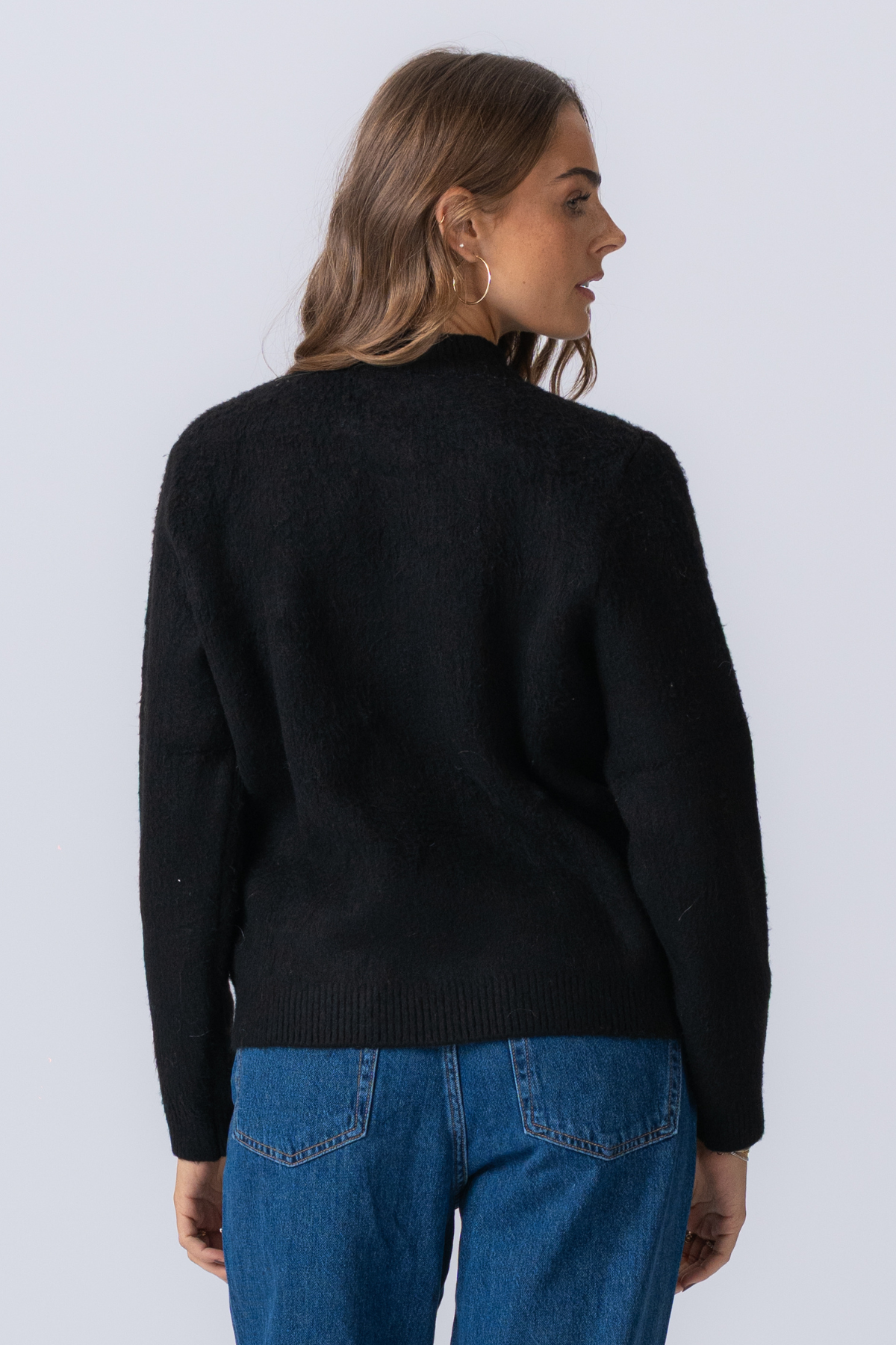 Hazel -neulottu villapaita on uskomaton monipuolisuus. Syvä, rikas musta sävy on kangas henkilökohtaiselle tyylillesi, valmis pukeutumaan ylös tai alas mihin tahansa tilanteeseen. Yhdistä se terävälle, ammattimaiselle ilmeelle tyylikkään räätälöityyn pariin Pants ja nilkkasaappaat. Siirtyminen rento viikonloppumalliin muotoilemalla sen suosikki denimisi ja terävät valkoiset lenkkarit. Suunnitteletko iltaan? Kerro se liukumekan päälle tai pari se nahkahameen kanssa ripaamaan ärtyisää hienostuneisuutta. Tämä yksi kappale avaa lukemattomia asuja, yksinkertaistaen kaapisi ja nostamalla tyyliäsi.