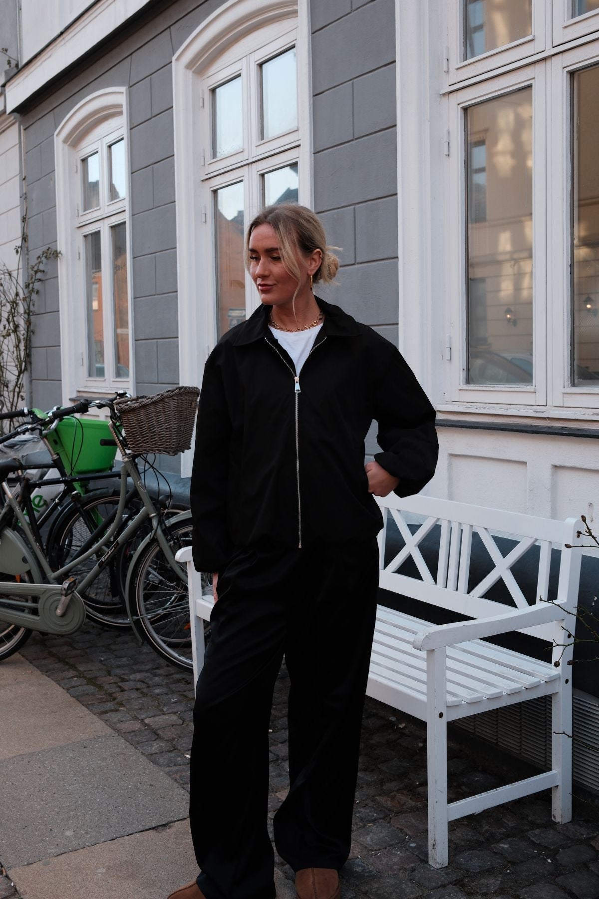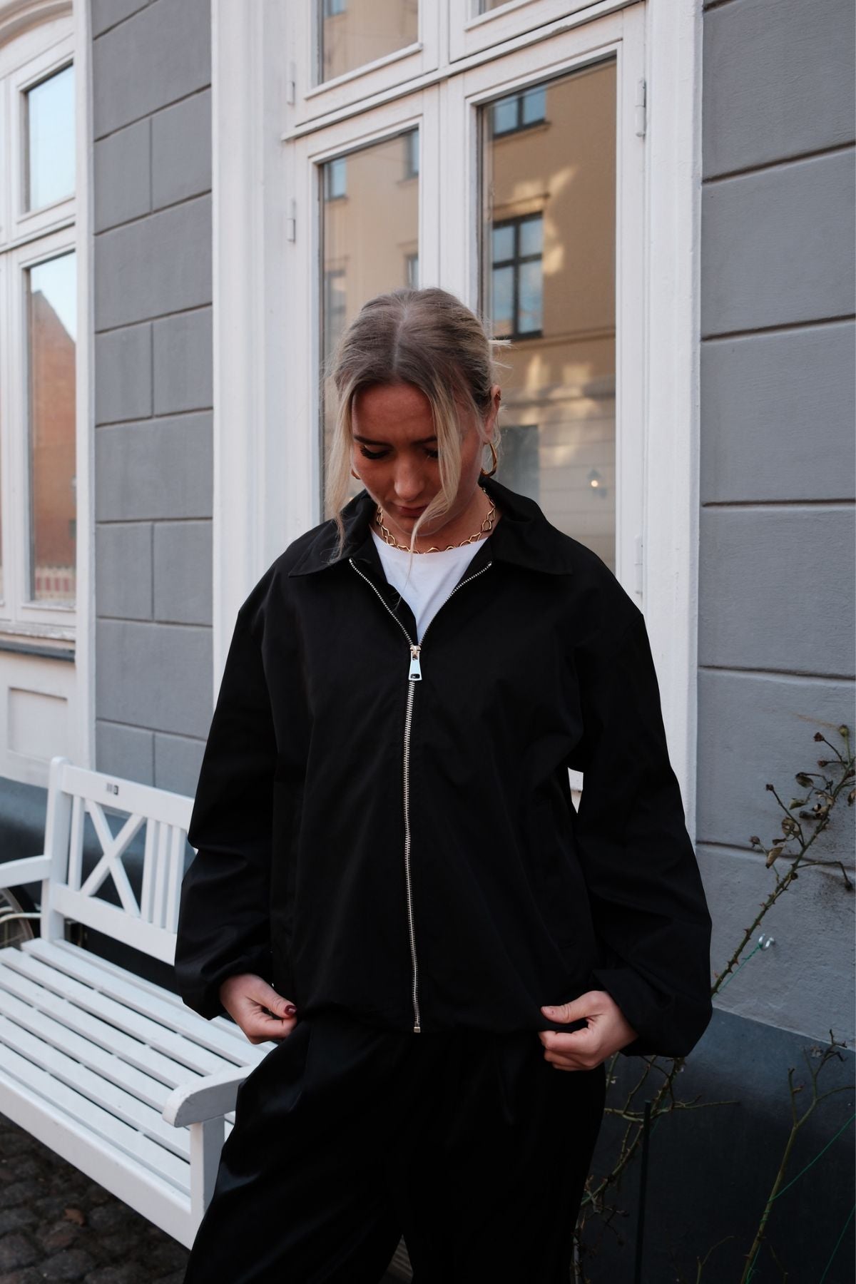 Tämän takin kauneus piilee sen monipuolisuudessa. Jos haluat rentoa mutta esteettistä kokonaisuutta, yhdistä se meidän kanssamme Performance Farkut ja yksinkertainen valkoinen t-paita. Jos tähtäät muodollisempaan tai toimistovalmiiseen tunnelmaan, kerrostele se räätälöidyn parin päälle Pants ja silkkipusero. Syvän mustan sävyn avulla voit kokeilla värejä ja tekstuureja, mikä tekee siitä todellisen sankariteoksen kokoelmassasi.Liity mukaan TEESHOPPEN yhteisössä