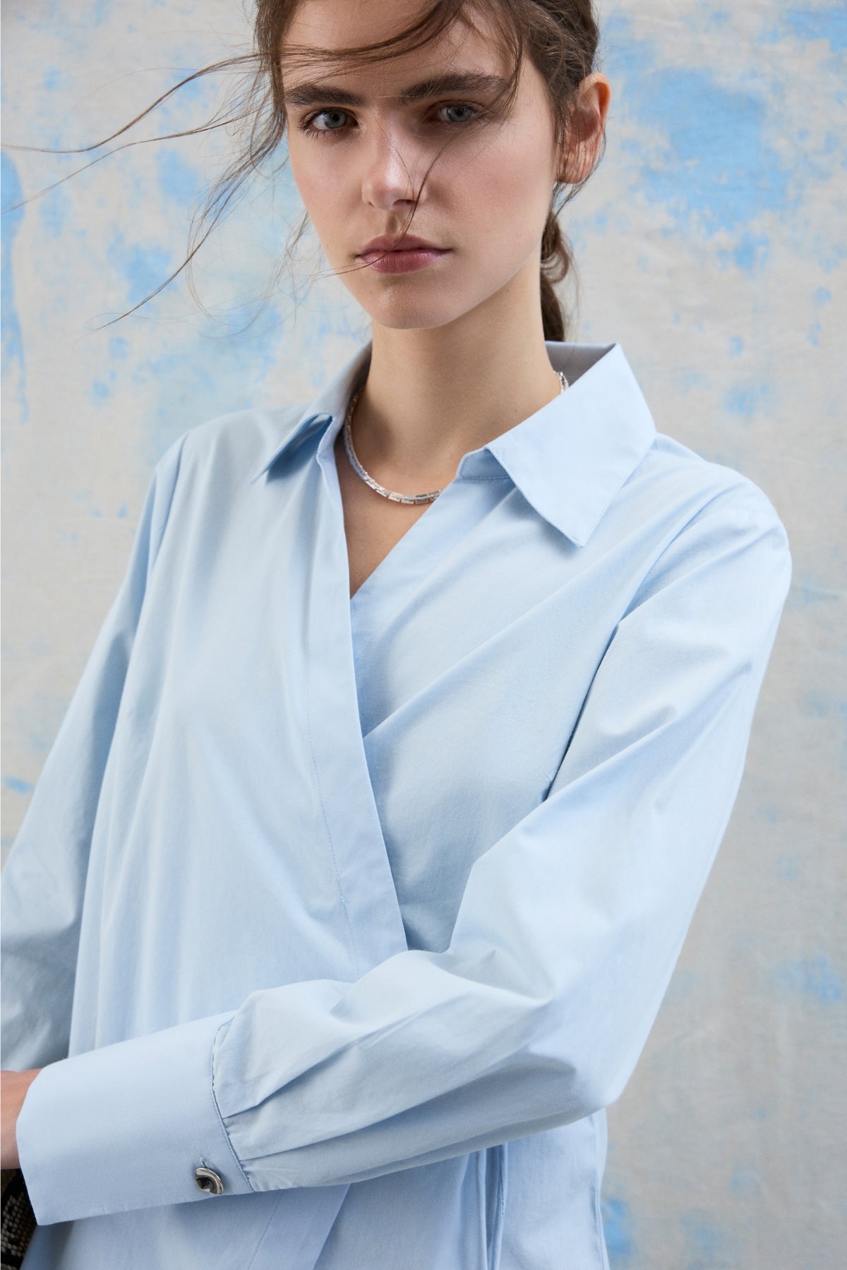 Rauhallinen Nantucket Breeze -väri, kaunis vaaleansininen, toimii täydellisenä neutraalina, tehden Lumi Wrap Topista uskomattoman monipuolisen. Sen hillitty eleganssi tekee siitä todellisen vaatekaapin peruselementin. Jos haluat tyylikkään ja ammattimaisen ilmeen, yhdistä se räätälöityyn Pants ja loafers. Oletko lähdössä iltaan? Muotoile se levenevällä hameella ja korkokengillä. Viikonlopun rennon tunnelman saamiseksi se näyttää täydelliseltä suosikkifarkkujesi ja tennareidesi kanssa.