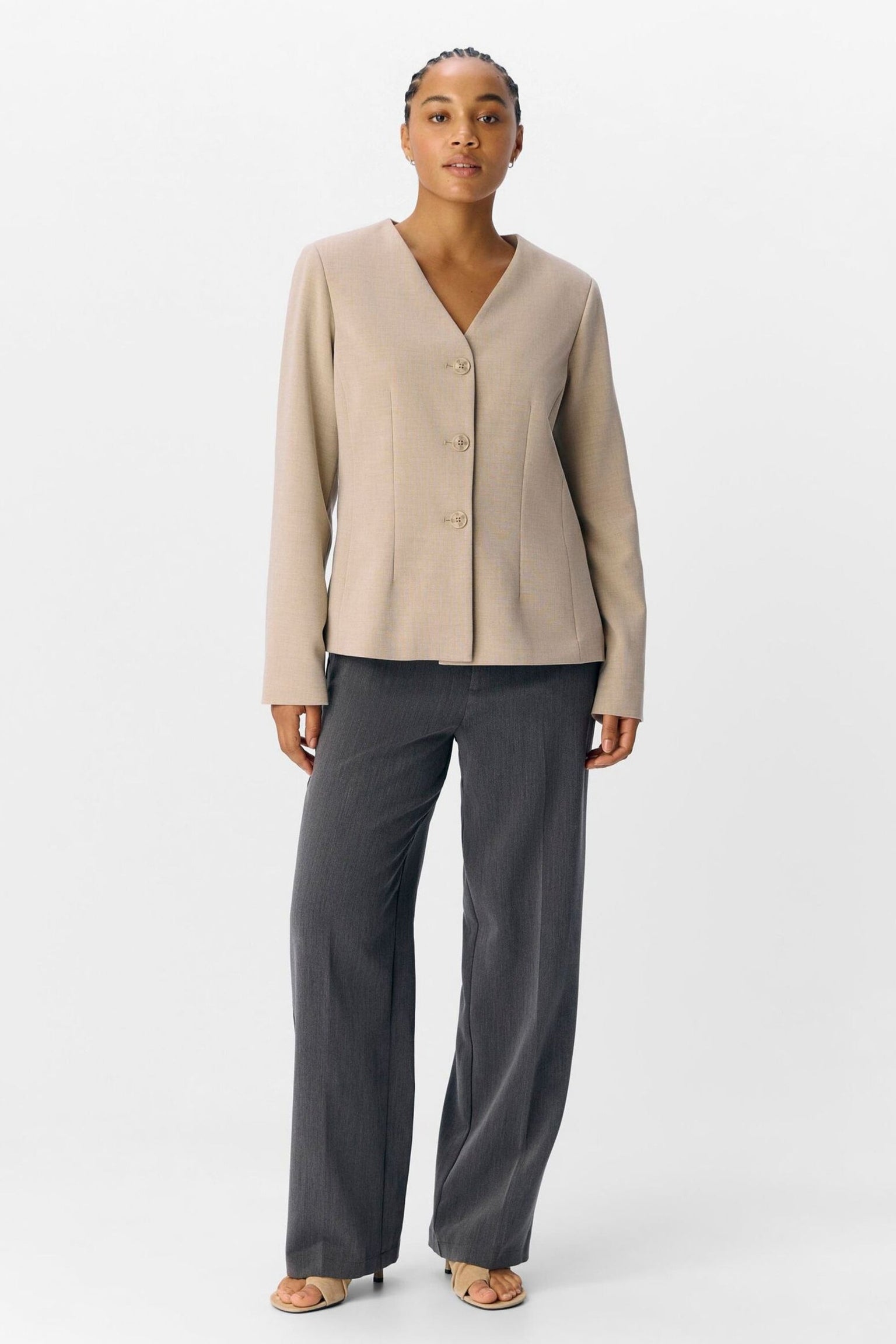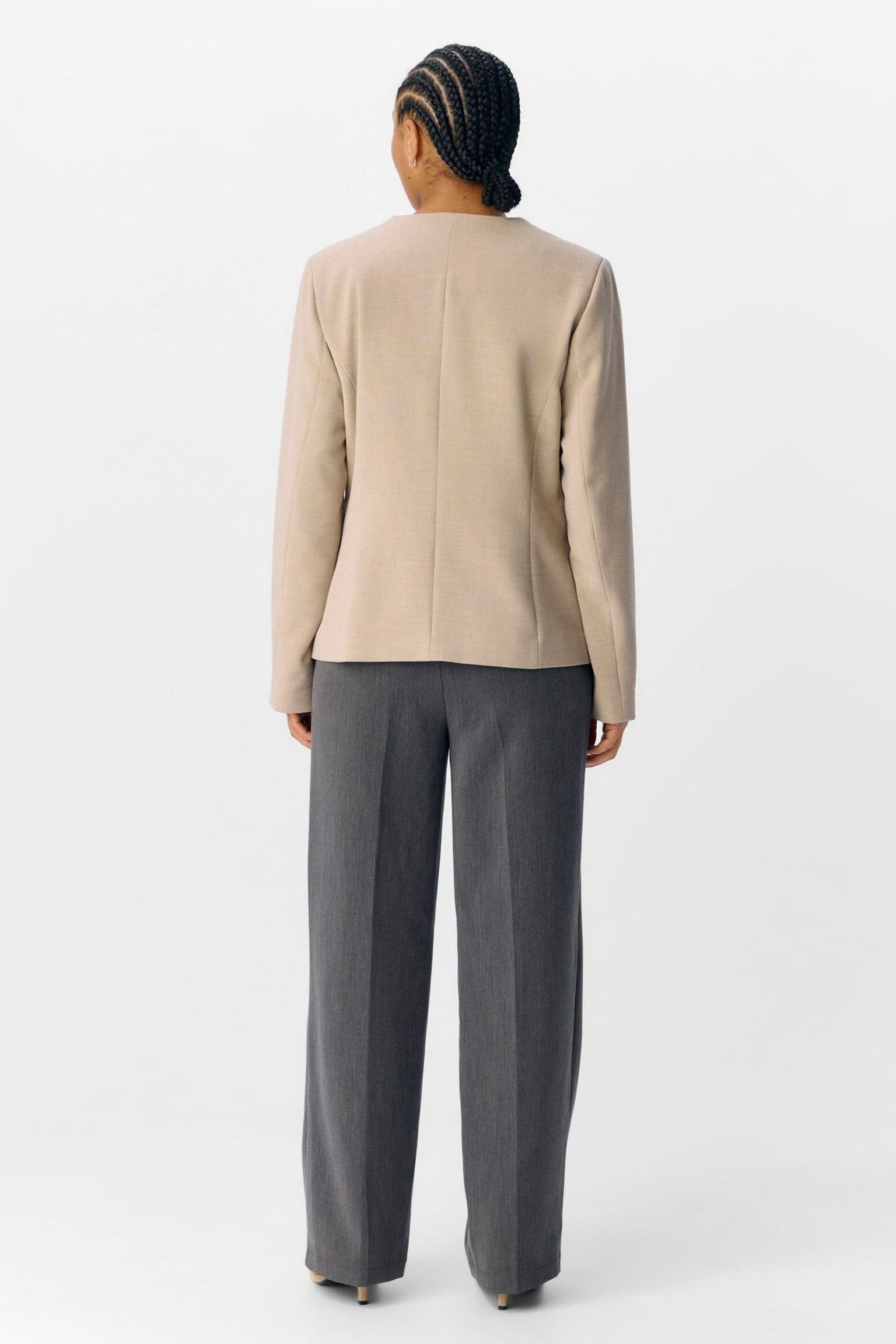 Meghan Blazerin muotoilu on suunniteltu modernin naisen mielessä. Jokainen ompele ja leikkaus on harkittu huolellisesti hienostuneen ja nykyaikaisen siluetin luomiseksi. Blazerissa on hienovaraisia, mutta hienostuneita aksentteja, jotka parantavat sen yleistä vetovoimaa tarjoamalla mukavuutta ja liikkumista. Keskittymällä puhtaisiin linjoihin ja virtaviivaistetut yksityiskohdat, kappale täydentää täydellisesti kaikkia vaatekaappikohtia ja toimii ihanteellisena kulmakivenä eri asuille.