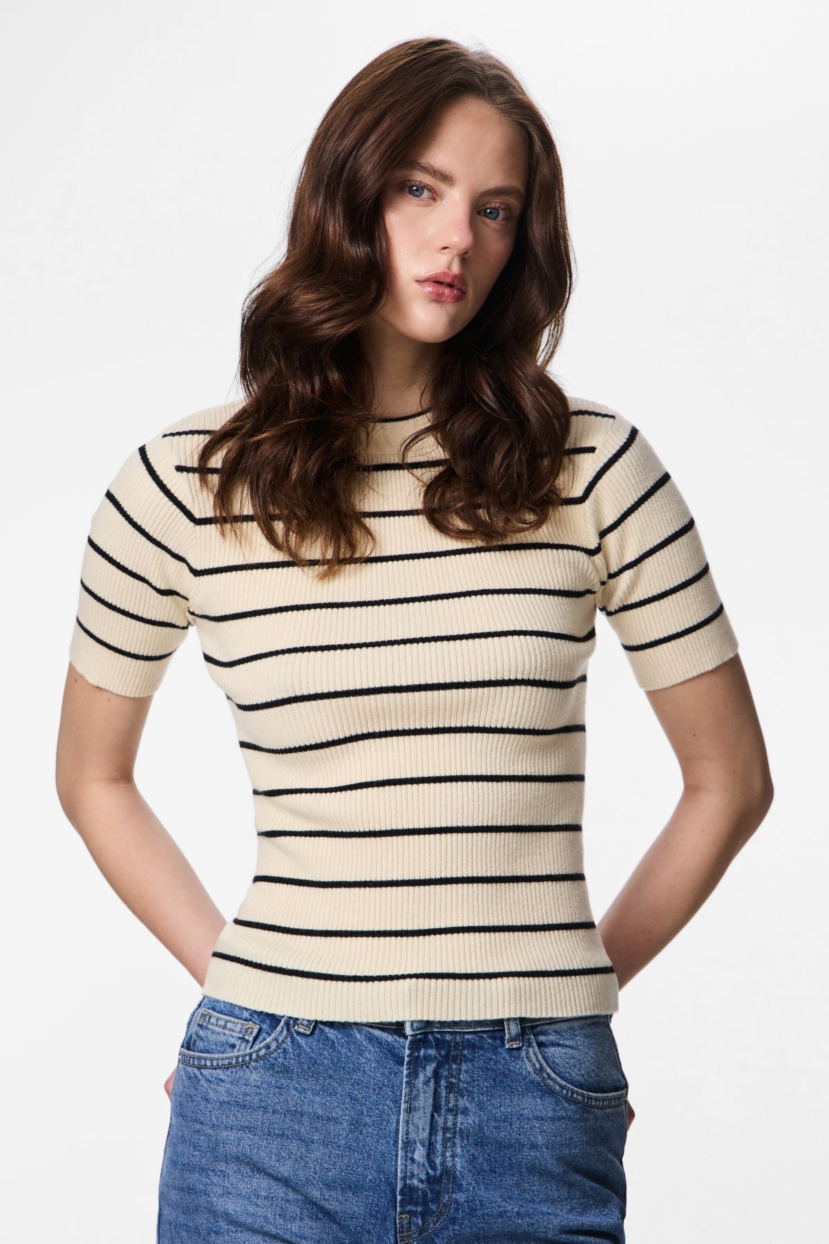 Tämän beigen ja mustan neuleen kauneus piilee sen mukautumiskyvyssä. Klassinen O-kaula-aukko kehystää kasvot kauniisti, kun taas rento istuvuus mahdollistaa helpon kerrostamisen. Jos haluat ammattimaisen kokonaisuuden, joka siirtyy saumattomasti pöydältä päivälliselle, yhdistä tämä toppi räätälöityjen Pants ja nilkkurit. Jos pidät rennommasta estetiikasta, se sopii täydellisesti suosikkifarkkusi ja tennareidesi kanssa. Neutraali väripaletti varmistaa, että se integroituu sujuvasti olemassa olevien vaatekaappisuosikkiesi kanssa.