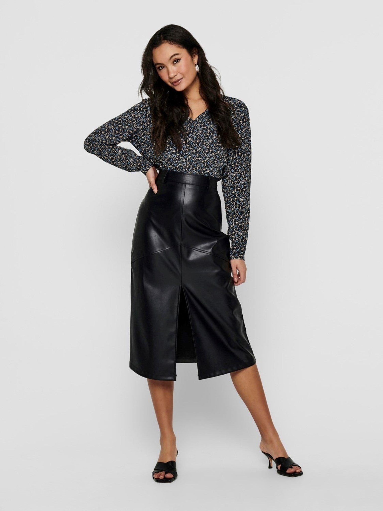 Iltamatkalle: Korosta ilmettä keinonahkaisilla leggingseillä, korkokengillä ja näyttävällä kaulakorulla, joka luo illallisvalmiin kokonaisuuden.