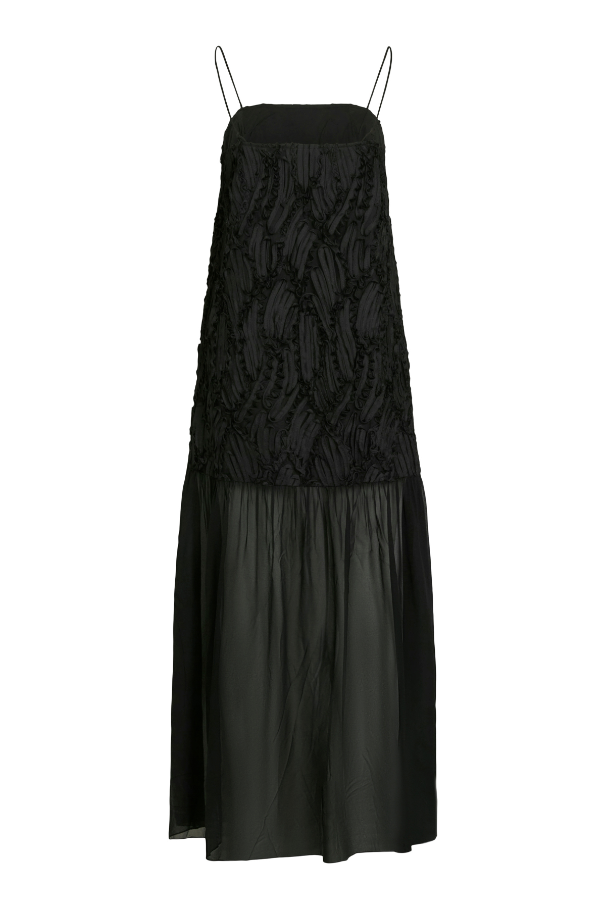 Eloisa, kestävä väri: Syvämusta väriaineemme on rikas ja haalistumaton, mikä varmistaa, että mekkosi pysyy ajattomana perusmateriaalina vaatekaapissasi tulevina vuodenaikoina.