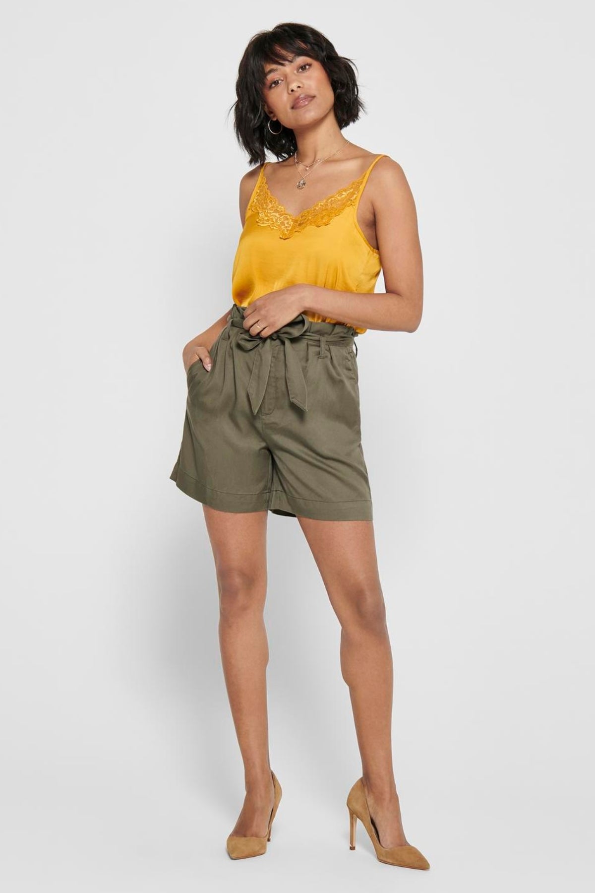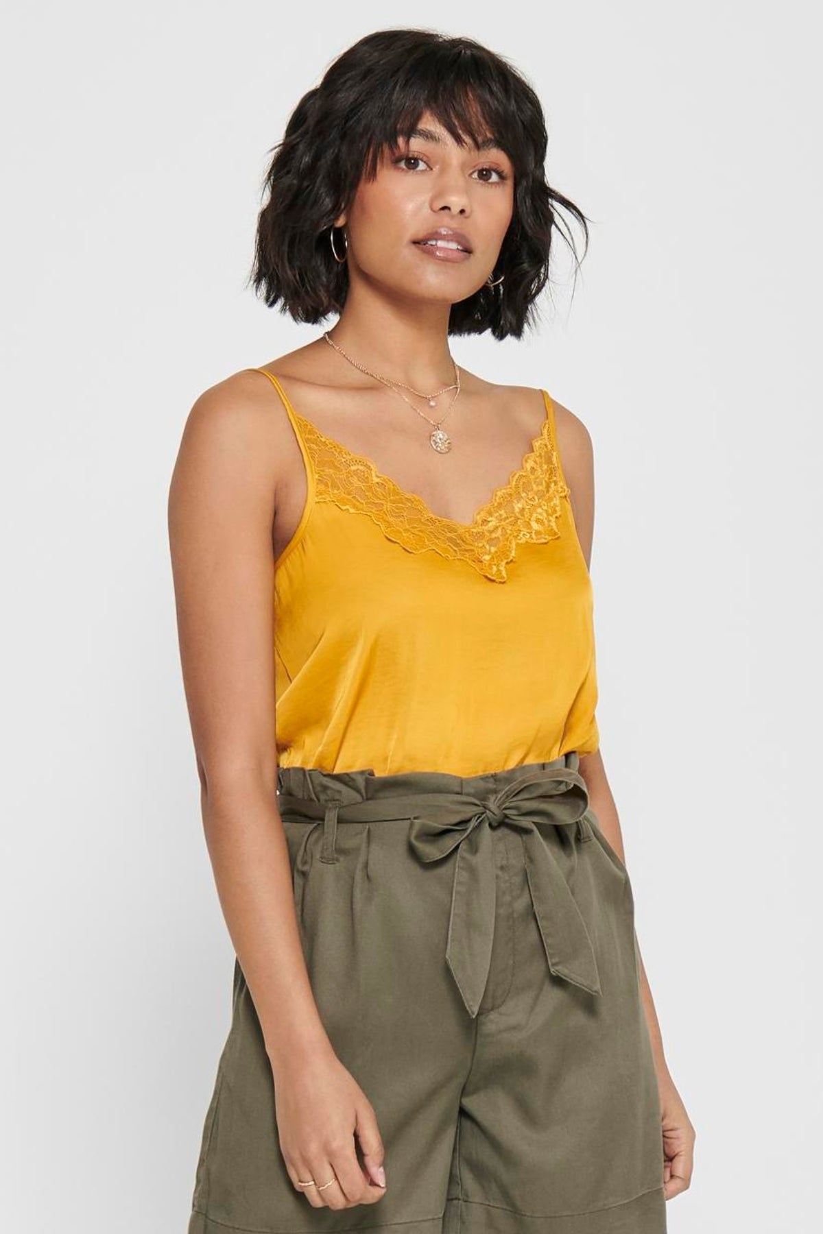 Tämän topin erottaa sen hienot pitsiyksityiskohdat. Monimutkaisesti kudottu ja strategisesti sijoitettu pitsi lisää tekstuuria ja visuaalista mielenkiintoa, joka on sekä ajaton että tyylikäs. Se pehmentää siluettia ja tarjoaa hienovaraisen, houkuttelevan aksentin olematta kuitenkaan ylivoimainen. se's sellaiset yksityiskohdat, jotka kiinnittävät huomiota ja ansaitsevat kohteliaisuuksia, saaden sinut tuntemaan olosi kiillotetuksi ja yhdistetyksi hetkessä.