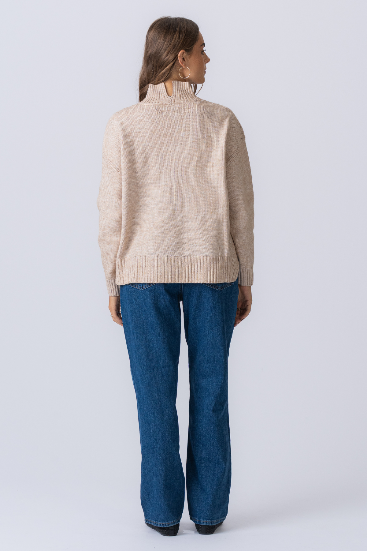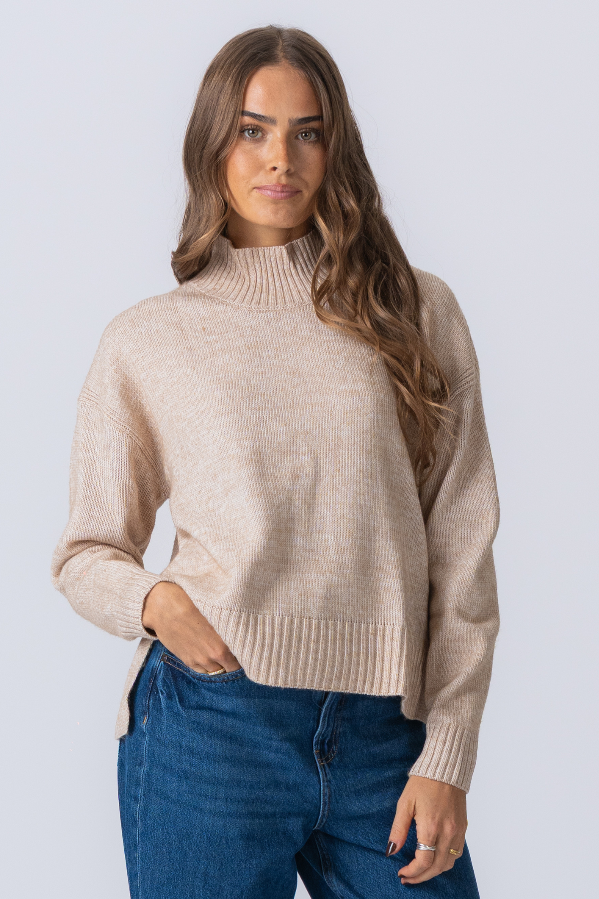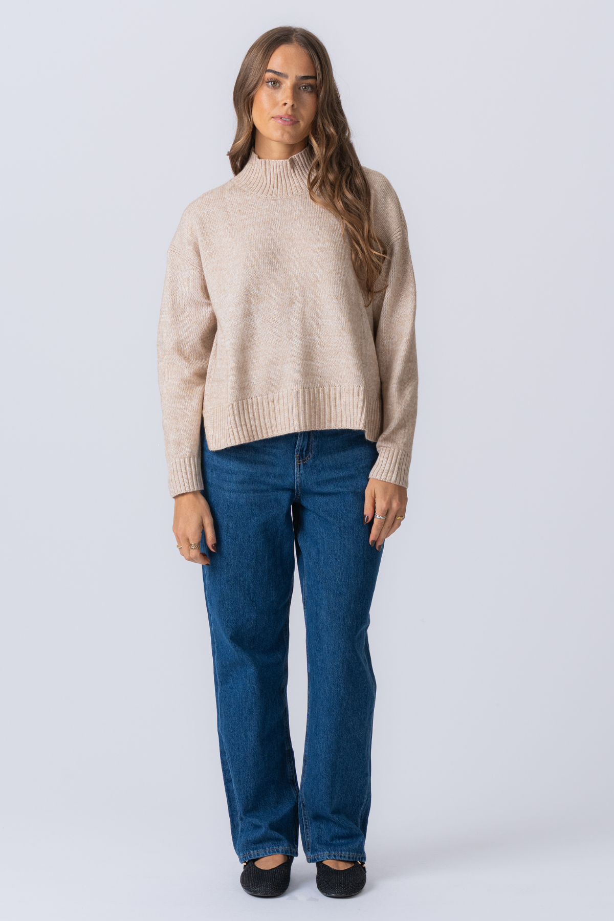Osoitteessa TeeShoppen, olemme erikoistuneet tuottamaan basic vaatteita kypsille ihmisille. Verkkokauppamme kautta käy vuosittain yli 750 000 asiakasta ja paketteja lähetetään viikon jokaisena päivänä, joten sitoutumisemme laatuun ja asiakastyytyväisyyteen on vertaansa vailla. Meidän Oversized Neulottu poolokauluksinen pusero - Beige naisille yhdistää ajattoman tyylikkyyden ja vertaansa vailla olevan mukavuuden, joten se on täydellinen lisä vaatekaappiisi.
